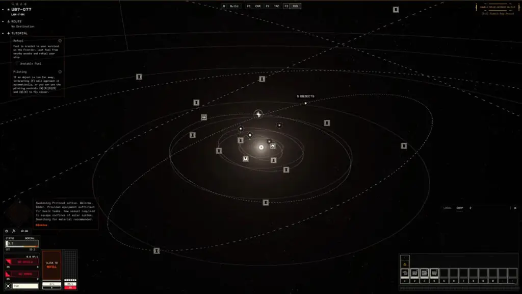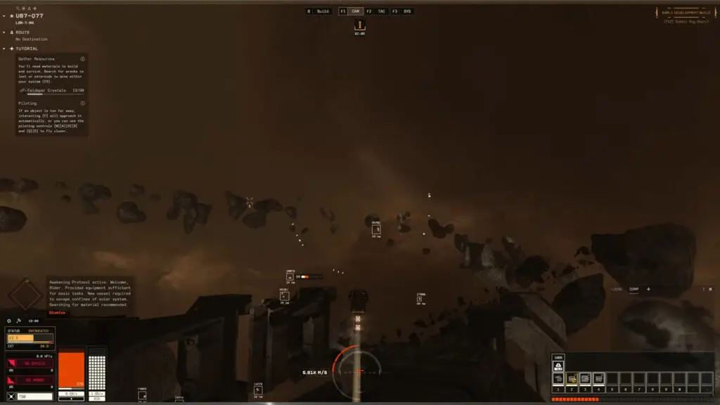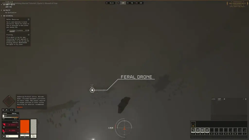 Cycle 5 replaces conventional dungeon systems with Orbital Zones, which function as large persistent ecosystems spanning entire solar systems. In these zones, resources, enemies, and loot appear organically across vast areas rather than in isolated instances. This design necessitates more extensive navigation and scouting, as resources can be spread hundreds or thousands of kilometers apart. The update also modifies AI behavior, with feral drones now patrolling between points of interest and defending strategic locations. Their movements vary over time, requiring players to continuously scan and evaluate situations before engaging in combat.